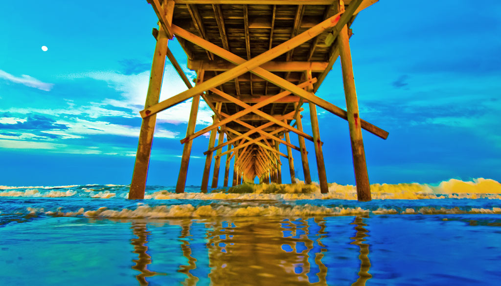 Adjoining Bird Island coastal reserve this is an old-fashioned family style beach at the southern-most point in North Carolina. Sunset Beach was home to the last working swing bridge on the east coast. This has since been replaced with a modern 65 foot high arc bridge. The old Sunset Beach pontoon swing bridge was saved by the Old Bridge Preservation Society which plans to create a museum celebrating the old bridge and the town’s history.
